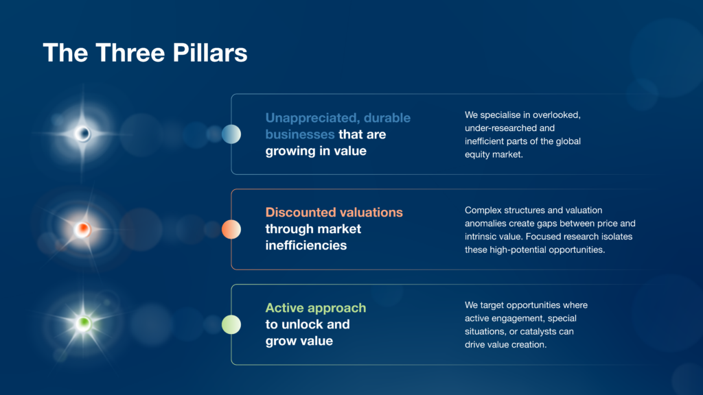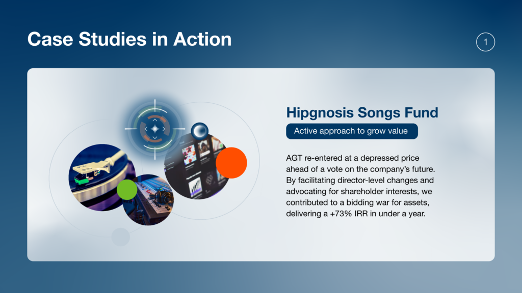 AGT’s index agnostic approach allows for investments to be made in areas of the market that are often overlooked by other funds, typically due to their unconventional structures, size, or liquidity. These areas can include listed family holding companies and private equity, which over time, have been shown to deliver excess returns.