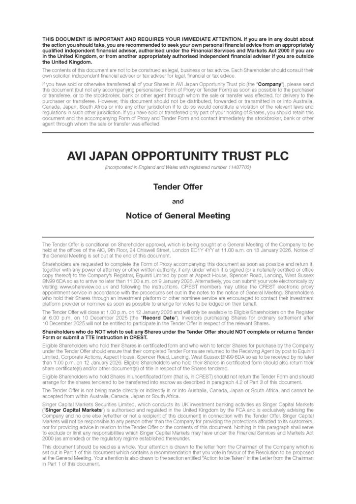 THIS WEBSITE IS NOT INTENDED TO OFFER OR TO PROMOTE THE OFFER OR SALE OF THE SHARES (THE “SHARES”) OF AVI JAPAN OPPORTUNITY TRUST PLC (THE “COMPANY”) IN THE UNITED STATES OR TO ANY “U.S. PERSONS” AS DEFINED IN REGULATION S (“US PERSONS”) UNDER THE US SECURITIES ACT OF 1933, AS AMENDED (THE “SECURITIES ACT”).